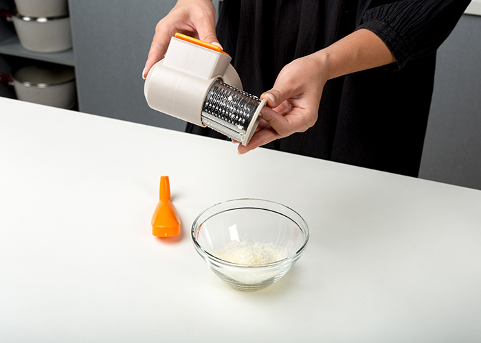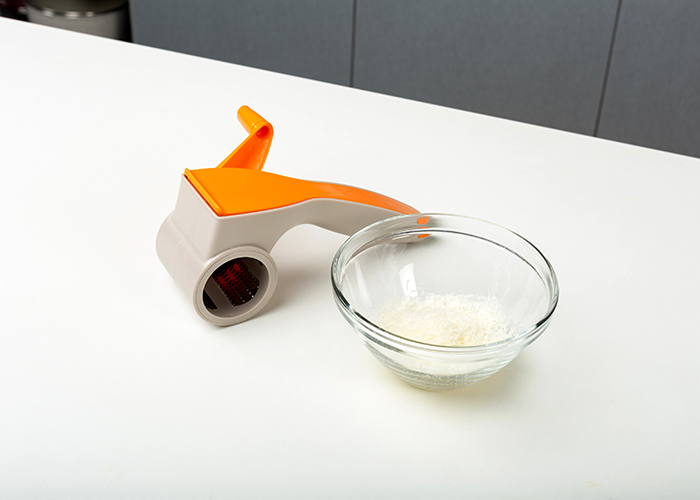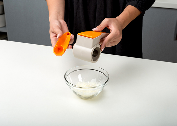 Με τον περιστροφικό τρίφτη της NAVA μπορείτε να τρίψτε εύκολα και γρήγορα σκληρό τυρί, σοκολάτα ή καρύδια και να γαρνίρετε τις συνταγές και σαλάτες σας πετυχαίνοντας ένα εντυπωσιακό αποτέλεσμα. Τρίψτε παρμεζάνα πάνω από ένα ζεστό πιάτο ραβιόλια, λαζάνια ή μακαρόνια και εξοικονομήστε χρόνο και κόπο!